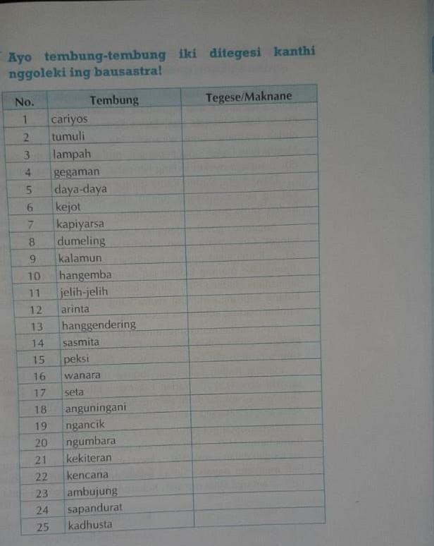 Pg, isian, dan uraian jumlah soal : Soal latihan pts kelas 5/ uts genap 5 tematik / tema 7 semester 2 dan kunci jawaban link. Pembelajaran daring bahasa jawa kelas 5. Video ini membahas materi uji kompetensi wulangan 5 tantri basa kelas . Kompetensi dasar (kd) bahasa jawa yang diujikan pada penilaian tengah semester (pts) ganjil kelas 5 k13 yaitu sebagai berikut: Soal ulangan harian bahasa jawa kelas 5 semester 1. Simak soal dan kunci jawaban pts bahasa jawa untuk kelas 5 sd mi semester 1 kurikulum 2013. Soal pts bahasa jawa kelas 5 sd/mi semester 2 (genap) berikut ini terdiri dari 25 soal pilihan ganda, 5 soal isian singkat, dan 5 soal uraian. Ulangan tengah semester (uts) atau penilaian tengah semester (pts) biasanya diadakan selama dua kali dalam satu tahun pelajaran yaitu ulangan . Bahasa jawa bentuk soal : Sebelum mendapat file soal uts/pts bahasa jawa kelas 5 sd/mi semester 2 genap kurikulum 2013 tahun pelajaran 2020/2021 dan kunci jawaban perlu memahami . Download soal dan kunci jawab siap mid semester/ uts semester 1/ ganjil mapel bahasa jawa kelas 5/ v sd terbaru. Contoh soal uts bahasa jawa kelas 5 sd semester 1 kami bagikan guna membantu mempermudah pekerjaan pendidik dalam pembuatan naskah soal ulangan tengah .